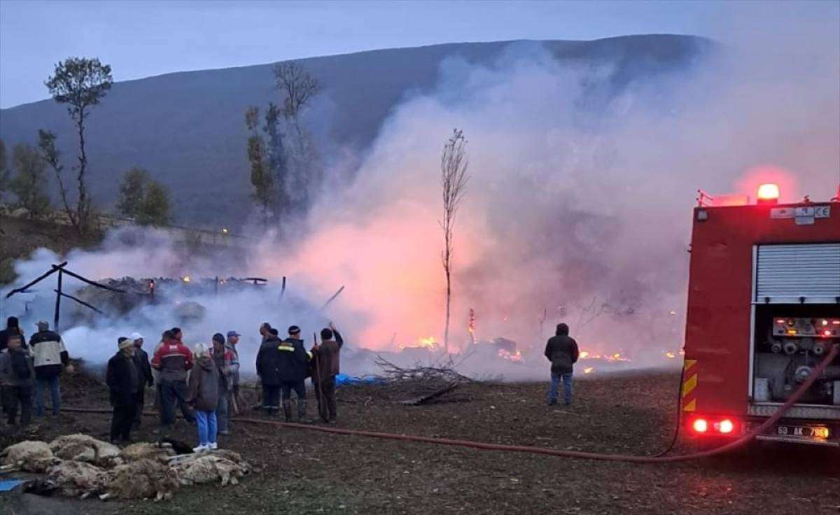 Yangın nedeniyle bir ağılda çıkan yangın nedeniyle 50 koyun telef oldu