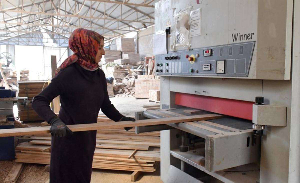 Şehirdeki iki ahşap atölyesinde kesmeden zımparalamaya, yağlamadan istiflemeye üretimin her aşamasında yer alan 18 kadın, titiz çalışma anlayışlarıyla işletmenin verimliliğini artırıyor