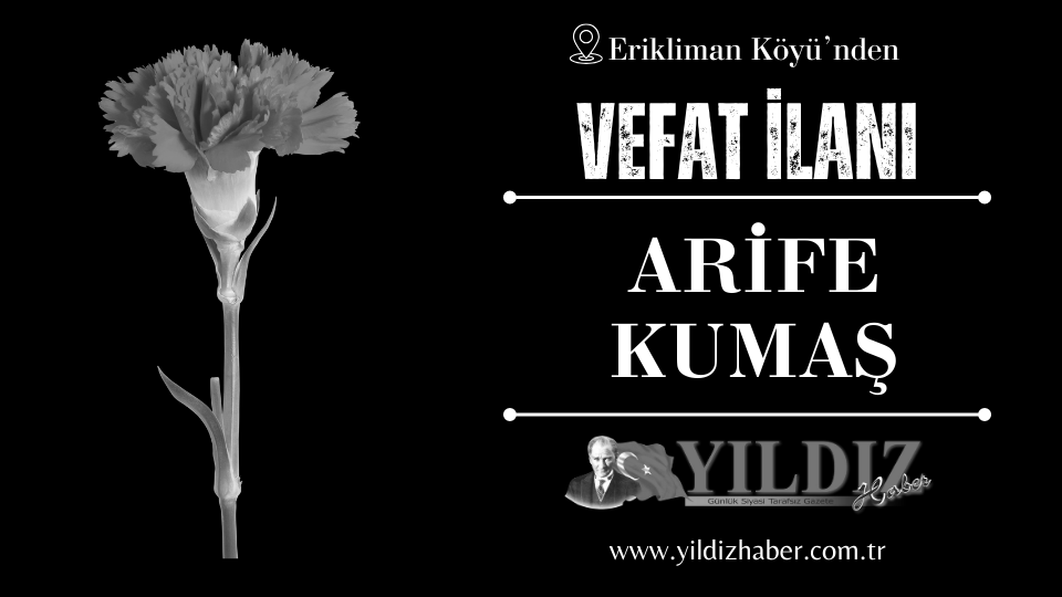 Erikliman Köyü'nden, Çirişoğlu Mahallesi'nden, merhum Salih Kumaş'ın eşi; Arife Kumaş vefat etti.