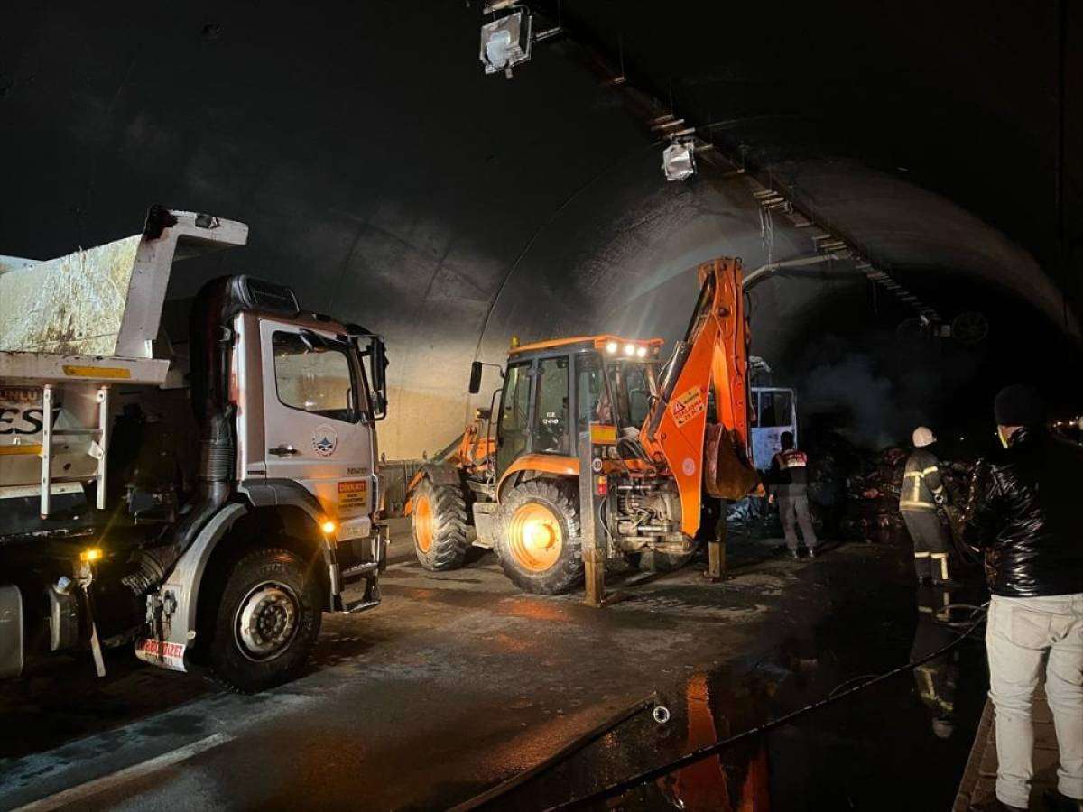 Yangın dolayısıyla bir süre trafiğe kapanan tünel, tırın çekilmesi ve temizlik çalışması sonrasında ulaşıma açıldı.