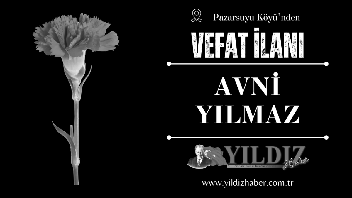 Pazarsuyu Köyünden Yavanoğullarından, merhum Şakir ve Maviş oğlu, merhum Emine Yılmaz’ın eşi, Kader Şahin’in babası, Azmi Şahin’in kayınbabası, İhsan, Ayşe, Asiye, Gülhem, Hacer ve merhum Ethem Yımaz’ın abisi, Avni Yılmaz vefat etti.