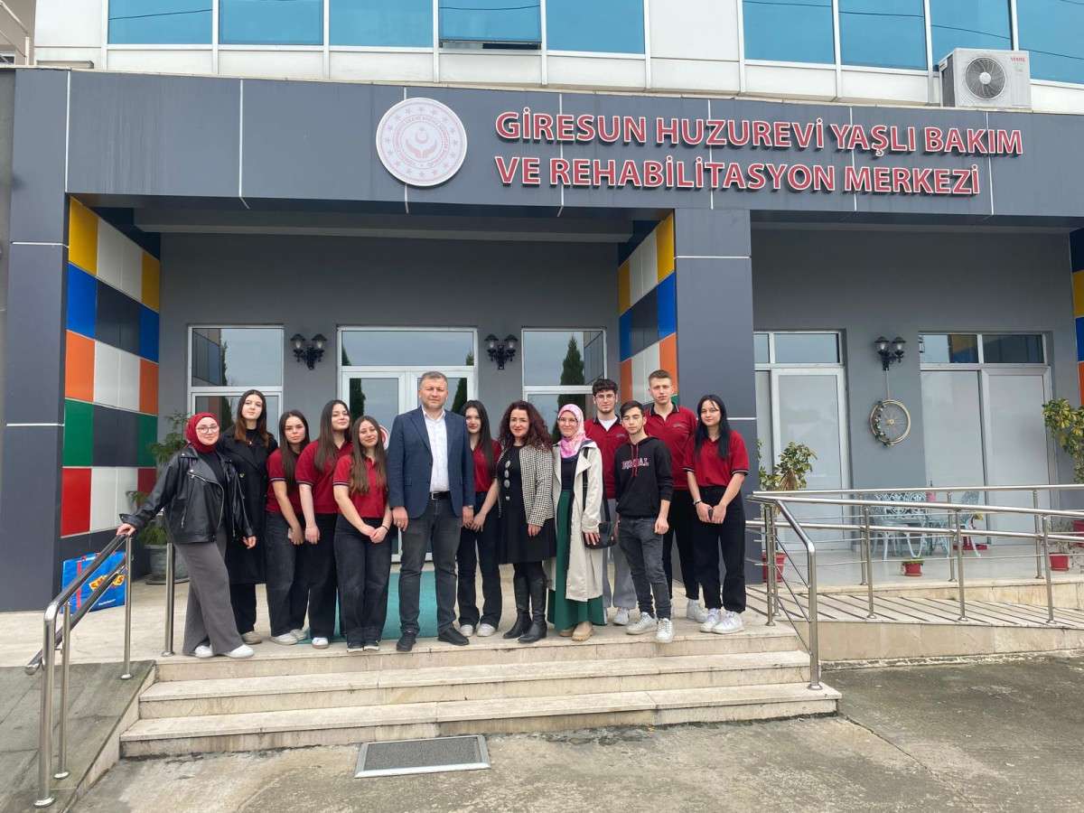 Okul Müdürü Sedat Bulut, Felsefe Öğretmeni Hacer Palavar, Din Kültürü ve Ahlak Bilgisi Öğretmeni Fatma Aslan Kaplan ve öğrenciler, Giresun Huzurevi ve Yaşlı Bakım Rehabilitasyon Merkezi'ni ziyaret etti.