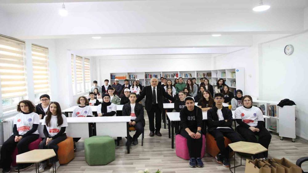 Başkan Güler, soru-cevap bölümünden sonra öğrencilere ve öğretmenlere hediye takdiminde bulundu.