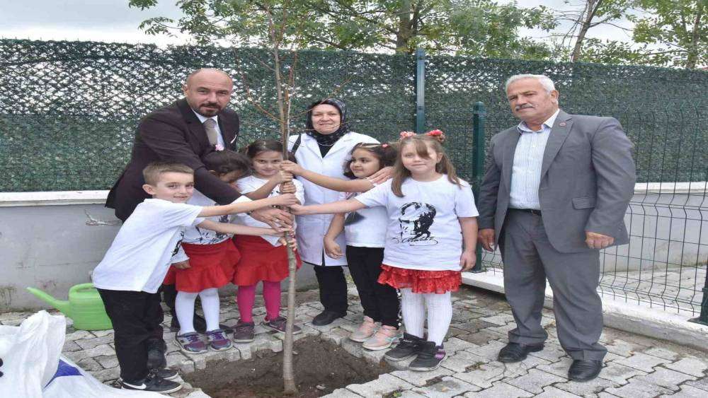 Atatürk’ün yarınları emanet ettiği nesille geleceğe bir fidan dikmenin oldukça anlamlı olduğunu belirten Başkan Hasan Togar, “11 Kasım Milli Ağaçlandırma Günü kapsamında ve Büyük Önder Atatürk’ün aramızdan ayrılışının 85. yıl dönümünde Dursun Korkmaz İlkokulumuzda yarınlarımıza daha yeşil ve daha güzel bir dünya bırakabilmek için bir araya geldik. Burada diktiğimiz fidanlarla ve bu fidanları diken yarınlarımızın emanetçisi çocuklarımızla, fidanlarımızla ‘Geleceğe nefes olalım’ diyoruz. Öğretmenlerimizin burada yetiştirdiği fidanlarımız bugün diktikleri fidanlarla inşallah doğaya saygı, yeşili sevmek ve korumak konusunda çok güzel bir eğitim almış oldular. Doğasıyla hayran bırakan ilçemizde bizler de bu güzellikleri yarınlarımız olan onlara bırakabilmek adına elimizden gelen gayreti gösteriyoruz ve bundan sonra da bu duyarlılık ve gayretimizi sürdüreceğiz” diye konuştu.