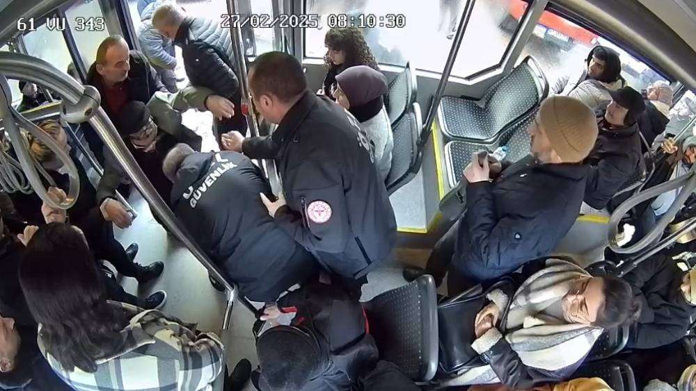Trabzon’da belediye otobüs şoförü otobüste kalp krizi geçirerek fenalaşan yolcuyu otobüsle hastaneye yetiştirdi.