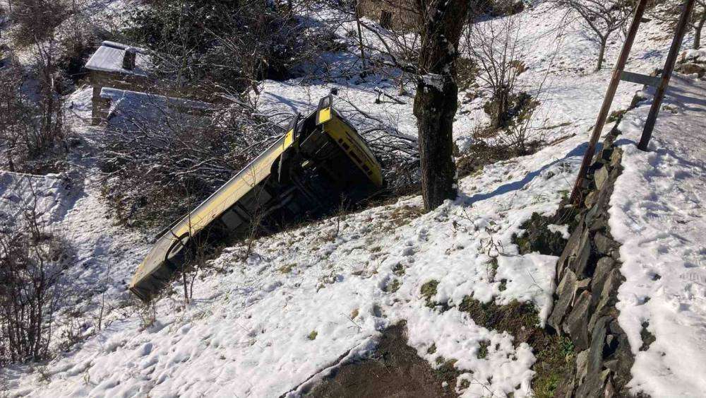 Belediye yolcu otobüsü karlı ve buzlu yolda kontrol çıkarak yamaçtan aşağıya yuvarlandı