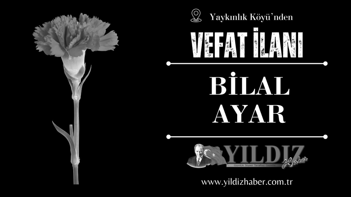 Giresun Merkez, Yaykınlık Köyü’nden, Ayaroğulları’ndan, merhum Abdullah Ayar’ın kardeşi Bilal Ayar vefat etti.