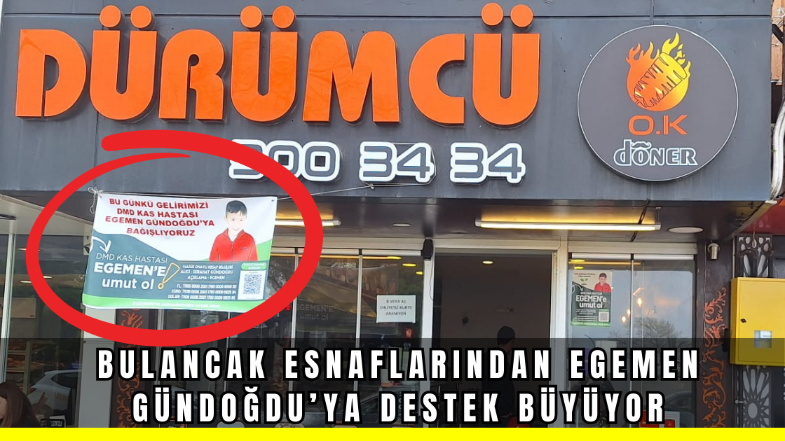 Egemen Gündoğdu için başlatılan yardım kampanyalarına bir yenisi daha eklendi. Bulancak’ta faaliyet gösteren "Dürümcü" döner işletmesi, 23 Nisan Çarşamba günü elde edilecek tüm geliri Egemen Gündoğdu'nun tedavisine destek olmak amacıyla bağışlayacağını duyurdu. İşletmenin bu duyarlı yaklaşımı ilçe halkı tarafından büyük takdirle karşılandı.