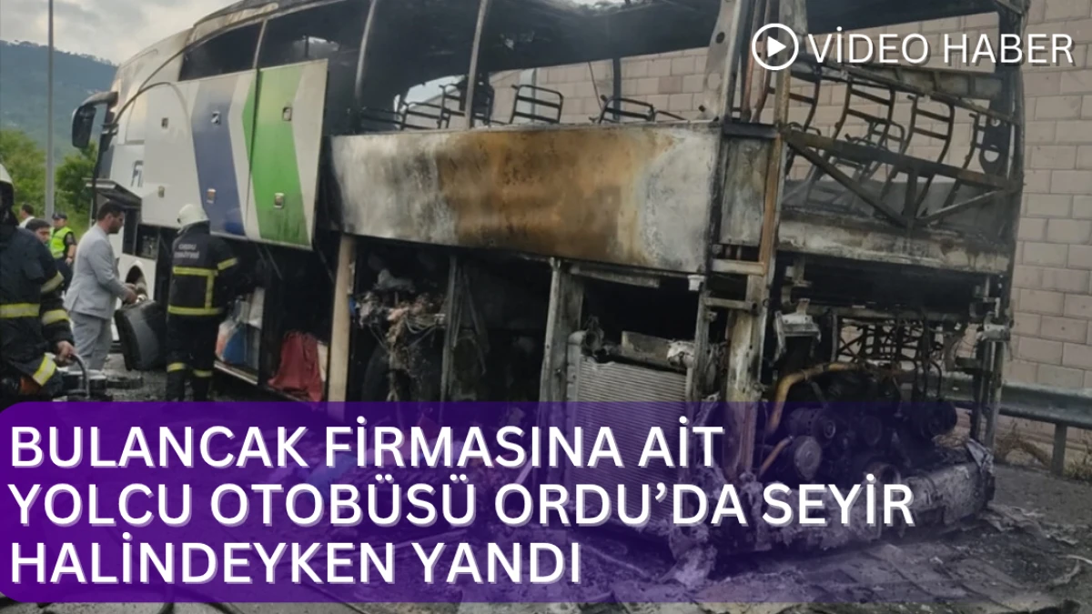 Bulancak merkezli Fındıkkale Turizm firmasına ait şehirlerarası yolcu otobüsü, Ordu’da seyir halindeyken çıkan yangında kullanılamaz hale geldi.