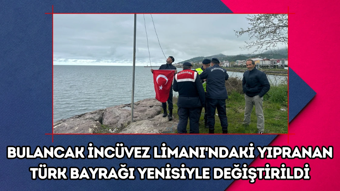 Bulancak İlçe Jandarma Komutanlığı, İncüvez Limanı'nda bulunan Türk Bayrağı'nın zamanla hava şartlarından etkilenip yıprandığını fark etti.