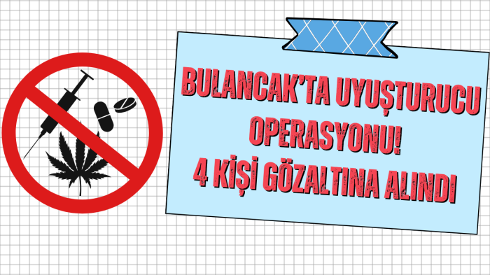 28 Kasım 2024 günü saat 00.20’de, Bulancak Cumhuriyet Başsavcılığı tarafından gerçekleştirilen ve KOM Şube Müdürlüğü, İstihbarat Şube Müdürlüğü ve Bulancak İlçe Jandarma Komutanlığı ekiplerinin yürüttüğü çalışmalar sonucunda, uyuşturucu madde ticareti yaptıkları belirlenen B.Ç., U.Y., A.K. ve K.D. isimli şüphelilerin adres ve araçlarına adli arama kararıyla operasyon düzenlendi. Operasyon sonucunda;     •    54 gram kubar esrar,     •    1 kök kenevir,     •    21 gram afyon sakızı (reçine esrar),     •    25 adet sentetik ecza (Galara),     •    0,5 mg AM (sentetik kannabinoid hammaddesi),     •    1 adet hassas terazi,     •    1 adet uyuşturucu öğütme aparatı,     •    70.305 TL nakit para,     •    2 adet 50 Euro,     •    1 adet muşta ve     •    4 cep telefonu ele geçirildi. 4 şüpheli, Bulancak Cumhuriyet Başsavcılığı’na sevk edilmek üzere gözaltına alındı.