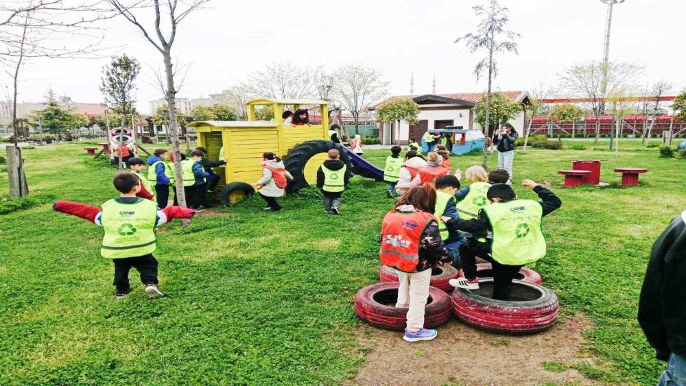 SAMSUN (İHA) – Samsun’da Canik Sıfır Atık Köyü’nde öğrenciler sıfır atık ve geri dönüşümün önemini öğreniyor, geri dönüştürülebilir atıklardan oluşturulan oyun alanlarında doyasıya eğleniyor.