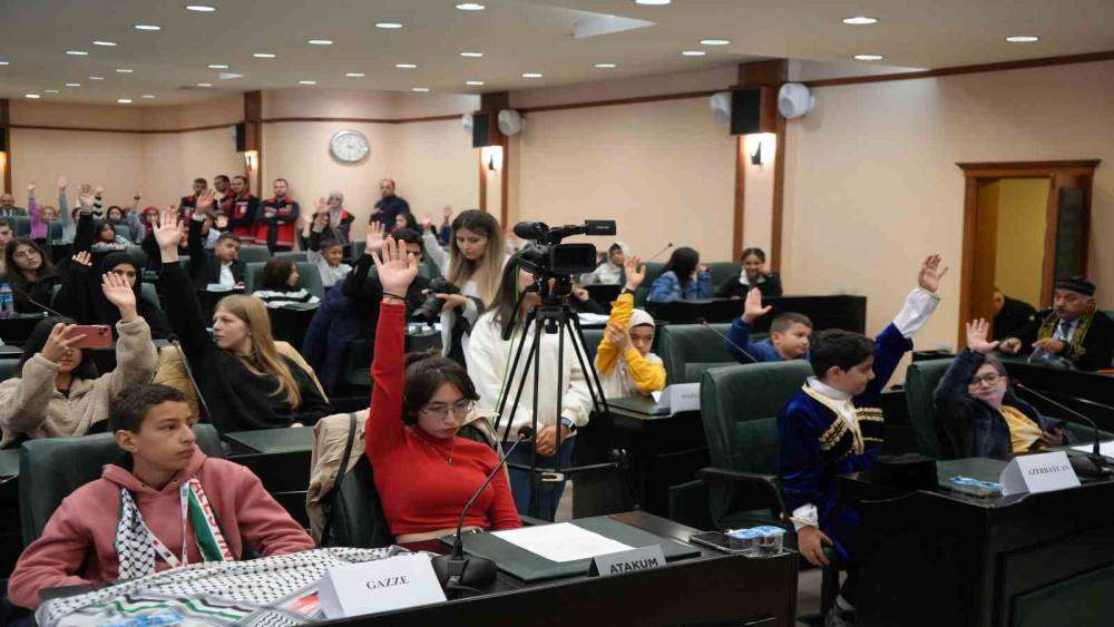 Mecliste gündem maddelerinden önce söz alan çocuklar, "Dünya Çocuk Hakları Günü, her çocuğun eşit ve adil bir ortamda büyüme hakkında sahip olduğu bir gün ancak dünyada birçok çocuk hala bu temel haklardan yoksun yaşamaktadır. Eğitim alma hakkında sahip olmayan, çocuğun çalışmaya zorlandığı, savaşların ve yoksulluğun gölgesinde büyümek zorunda kalan çocuklar var. Dünya Çocuk Hakları Günü, çocukların hak ve özgürlüklerini büyüklere hatırlatan bir gündür. Her bir çocuğun büyüyüp, gelişmesine ve dünya üzerinde iz bırakmasına yardımcı olan bu hakları unutmamız ve unutturmamız gerekiyor. Dünyada milyonlarca çocuk haklarından mağdur bırakılıyor. Kimi savaşın ortasında kimi okula gidemiyor kimi ise bir çocuk gibi yaşama fırsatı bulamıyor. Bunları düşündüğümüzde haklarımızın sadece kağıtlarda yazılı kalmaması gerektiğini düşünüyoruz. Biz çocuklar sadece geleceğin değil, bugünün de bir parçasıyız. Sesimizin duyulması, ihtiyaçlarımızın fark edilmesi ve haklarımızın korunması daha iyi bir dünya için çok önemlidir” ifadelerini kullandılar.