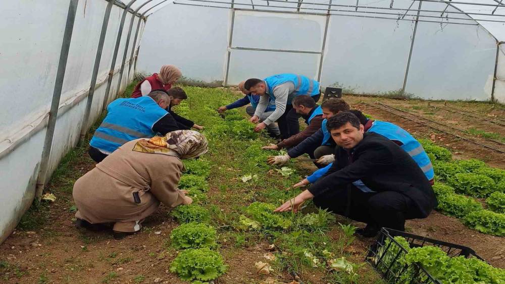 Ordu’nun Ünye ilçesinde ziraat odası başkanlığının hayata geçirdiği ’Toprağa Dokunan Eller Kazanıyor’ projesi dahilinde, denetimli serbestlikteki hükümlüler, kendi yetiştirdikleri marul ve maydanozların ilk hasadını gerçekleştirdi.Ünye Ziraat Odası, Ünye Cumhuriyet Başsavcılığı Denetimli Serbestlik Müdürlüğü, Ünye İlçe Tarım ve Orman Müdürlüğü işbirliğiyle yürütülen projede, hükümlülerin diktiği marul fidelerinin ilk hasadı Ünye Ziraat Odası’na bağlı 7’den 77’ye Tarım Okulu’nda gerçekleştirildi. Programda hükümlülerin yetiştirdiği taze ürünlerden Denetimli Serbestlik Müdürlüğü çalışanlarına da hediye edildi."Bu proje, denetimli serbestlik görenlere meslek kazandırma projesidir"Projenin temel amacının denetimli serbestlikteki bireyleri topluma yeniden kazandırmak olduğunu söyleyen Ünye Ziraat Odası Başkanı Osman Sarıkahraman, "Ünye Cumhuriyet Başsavcılığı Denetimli Serbestlik Müdürlüğü ve Ünye İlçe Tarım Orman Müdürlüğü ile birlikte yaptığımız proje çerçevesinde denetimli arkadaşlara ektirdiğimiz marul soğan ve maydanoz fidelerinin büyütüp hasadını gerçekleştirdik. Denetimlik serbestlik bürosuna ve çalışanlarına ürettikleri marullardan kendilerine hediyeler sunduk. Burada amacımız denetim gören arkadaşlarımızı topluma kazandırmak, onları tarıma sevdirmek ve üretime katkı sağlamaktır. Buradaki hasadımızda 7 denetim kişileri vardı. Zaman zaman hasatlarımızı 15 kişiyle birlikte yaptık. Bu projemiz bir yıldır Ünye’de devam edecek. Ünye İlçe Tarım ve Orman Müdürlüğümüz önümüzdeki Pazartesi’den itibaren eğitim serasında örtü altı eğitimi verecektir. Aslında bu proje denetimli serbestlik gören arkadaşlarımızın cezaları bittiğinde ellerinde mesleği olsun adı altında bir projedir" dedi.