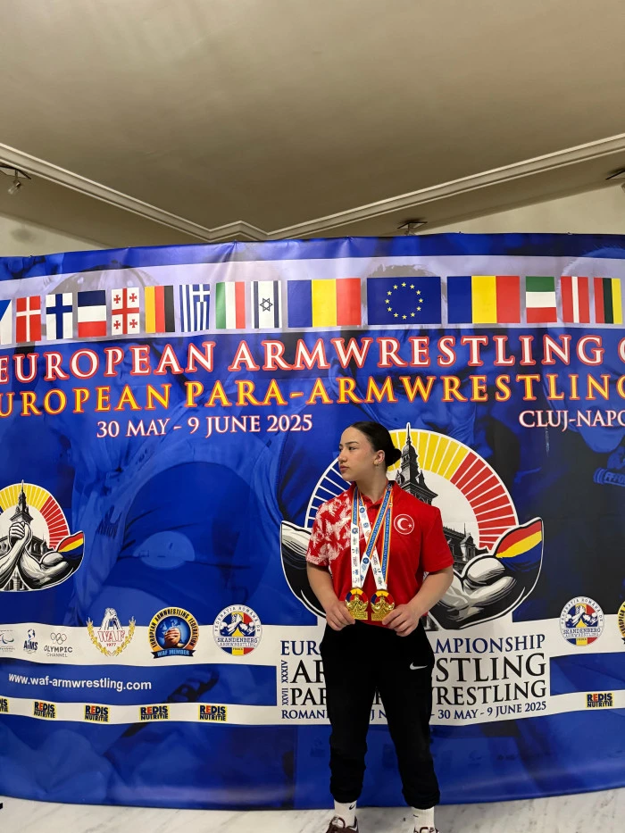 Romanya'nın Cluj kentinde düzenlenen 2025 Avrupa Bilek Güreşi Şampiyonası’nda ülkemizi başarıyla temsil eden Bulancaklı milli sporcu Deva Dübüş, tarih yazmaya devam ediyor.