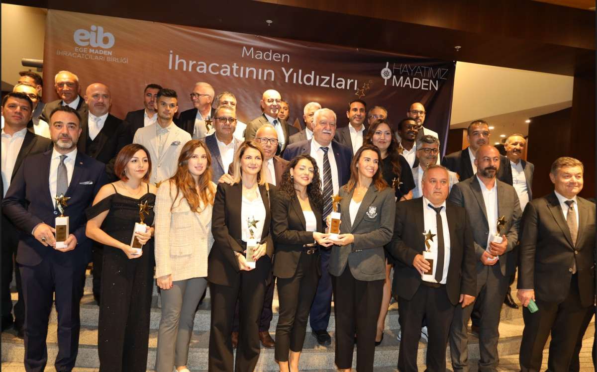 Bu başarıya 630 milyon dolarlık ihracatla en büyük katkıyı sağlayan 50 üyesi için “Maden İhracatının Yıldızları Ödül Töreni” düzenledi. Ege İhracatçı Birlikleri’nde yapılan ödül töreninde Endüstriyel Hammaddeler, Toplam Doğal Taş, İşlenmiş Doğal Taş, Blok Doğal Taş, Granit, Yüksek Katma Değerli Endüstriyel Hammadde, Yüksek Katma Değerli Doğal Taş, Yeni Üyeler, Yeni Pazarlar ve Yükselen Pazarlar kategorilerinde 50 firmaya ödülleri takdim edildi.