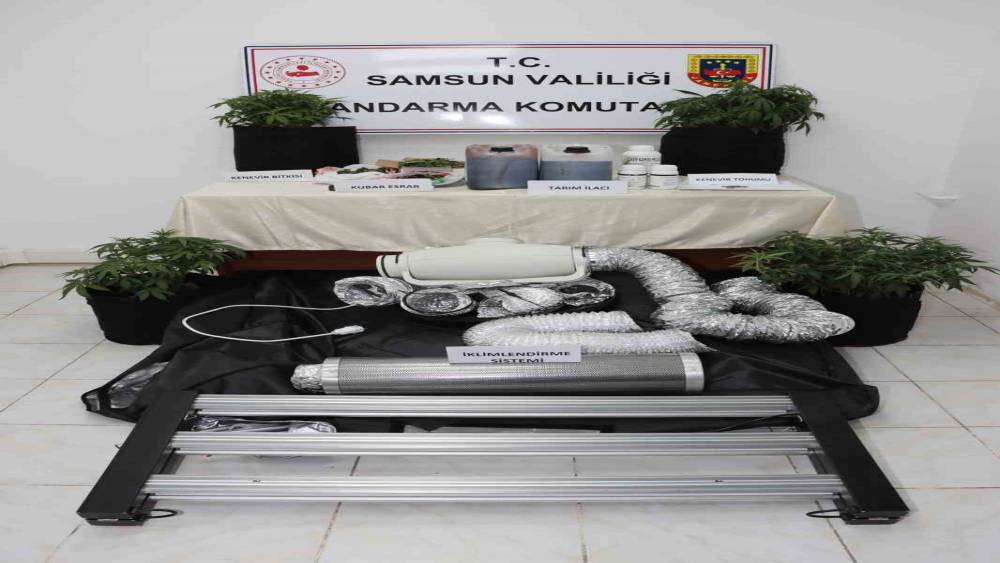 Olay, Atakum ilçesi Denizevleri Mahallesi’nde meydana geldi. Edinilen bilgiye göre, Samsun İl Jandarma Komutanlığı İstihbarat Şube Müdürlüğü, KOM Şube Müdürlüğü ve Atakum İlçe Jandarma Komutanlığı ekipleri, Y.Y. (40) isimli şahsın evine iklimlendirme sistemi kurarak uyuşturucu imal ettiği bilgisine ulaştı. Yapılan operasyonda şahsın evinde yapılan aramalarda 1 adet iklimlendirme sistemi, 355 gram kubar esrar, 4 adet ekili kenevir bitkisi ve bir miktar uyuşturucu madde ele geçirildi.