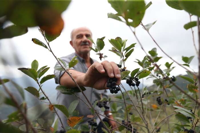 Trabzon'da antioksidan özelliği dolayısıyla "süper meyve" olarak da adlandırılan aronyanın hasadına başlandı.