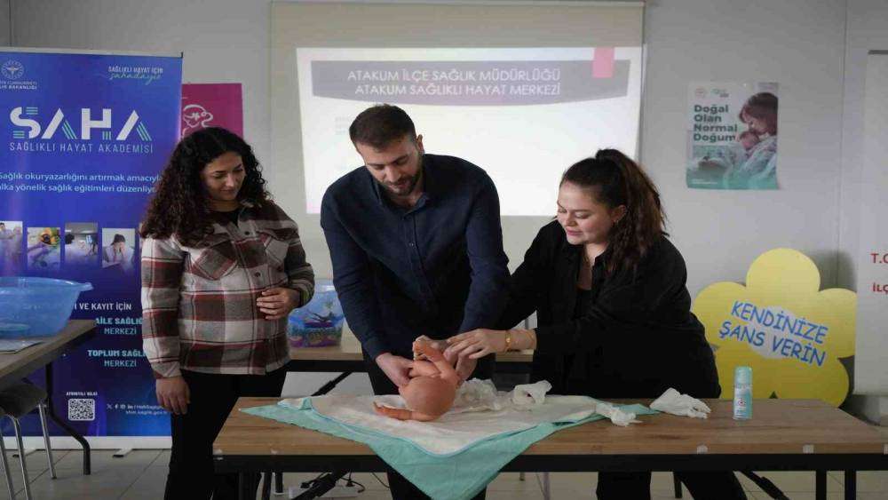 Atakum İlçe Sağlık Müdürlüğü Atakum Sağlıklı Hayat Merkezi Gebe Okulu’nda düzenlenen eğitimlerde, baba adaylarının ilk bebek deneyimi renkli anlara sahne oldu. Sağlık personelleri eşliğinde gerçekleştirilen uygulamalı eğitimlerde, baba adayları da yeni doğan bakımını deneyimledi. Anne adayları ise gebelik süreci, doğuma hazırlık ve bebek bakımı gibi konularda bilgilendirildi. Yetkililer, gebelik döneminde doğru bilgiye ulaşmanın hem annenin hem de bebeğin sağlığı açısından büyük önem taşıdığını vurguladı. Bebek bekleyen çiftler ise eğitimlerin eğlenceli geçtiğini ve yararlı olduğunu söylediler.