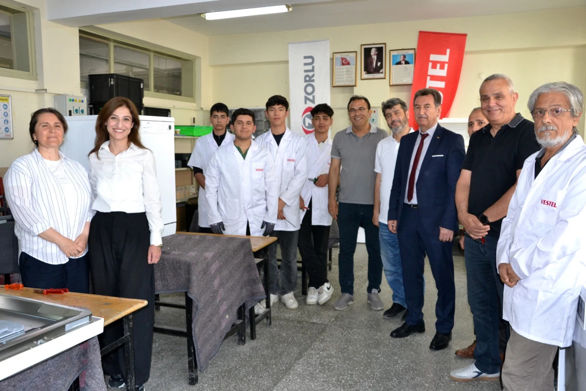 Manisa Mesleki ve Teknik Anadolu Lisesi Elektrik-Elektronik Teknolojileri Alanı öğrencileri tarafından 100 adet bulaşık makinasının yenilemesi gerçekleştirildi. Vestel firmasının beyanı üzerine 100 adet geri dönüşüme gidecek olan ürünler tekrar ülke ekonomisine daha hesaplı ve ucuz olarak kazandırılmış oldu. Aynı zamanda sıfır atık konusunda ülke ekonomisinin yanı sıra Vestel şirketine ve öğrencilere maddi olarak da katkı sağlanmış oldu. Şehzadeler İlçe Milli Eğitim Müdürü Metin Gençay, Mesleki ve Teknik Anadolu Lisesi Elektrik Bölümünü ziyaret etti, yapılan çalışmaları yerinde inceledi. Öğrencilerle birlikte makinaları montajladı. Okul Müdür Vekili Ulaş Turhan, Teknik Müdür Yardımcısı Yelda Kurt, Elektrik Elektronik Alan Şefi Volkan Kızmaz,  Atölye Şefleri Murat Korkmaz,  Okan Kahraman,  Hakan Oral, Mehmet Aydın 23 grupta 20 öğrenci görev çalışma yapıyor.  Öğrencilerin bütçelerine destek olunuyor  Şehzadeler İlçe Milli Eğitim Müdürü Metin Gençay yaptığı açıklamada "Vestel Beyaz Eşya ile Manisa Mesleki ve Teknik Anadolu Lisesi arasında yapılan protokol ile bayilerin sattığı bulaşık makinalarında, taşıma ve lojistik sırasında oluşan arıza veya bayilere gelen arıza şikayetlerinden oluşan sorunlar,  Manisa Mesleki ve Teknik Anadolu Lisesi Elektrik Bölümü tarafından revize ediliyor.  Dış gövdede çökük ve ezikler,  iç gövde, küvet değişimi, motor, su hortumu ve gideri değişimi, enerji kablosu değişimi, tuz kabı, kapak, conta, kapasitör, alt taban değişimi için okulumuza gönderilen Vestel ve yan marka ürünleri revize edilerek sorun gideriliyor.  Hasarlı bu ürünler ülke ekonomisine kazandırılmaktadır. Bu proje ve protokol kapsamında çalışan öğrencilerimiz derste öğrendikleri bilgileri, öğretmenlerimizin rehberliğinde Türkiye Yüzyılı Maarif Modeli kapsamında beceriye dönüştürerek, bütçelerine katkı sağlamakta, bu geri kazanımla ürünleri ülke ekonomisine kazandırmaktadırlar. "dedi.  Gençay, “Böylelikle bu ürünler muadili sıfır ürüne göre daha hesaplı olarak vatandaşın kullanımına sunulmaktadır. Proje kapsamında 100. Ürün revizyonu gerçekleştirilerek teslim edilmiştir. Geri Dönüştürmeden Geri Kazanım "sağlanmaktadır. Bu projede emeği geçen paydaşlarımıza, yöneticilerimize, öğretmenlerimize, öğrencilerimize teşekkür eder, başarılar dileriz” diye konuştu.