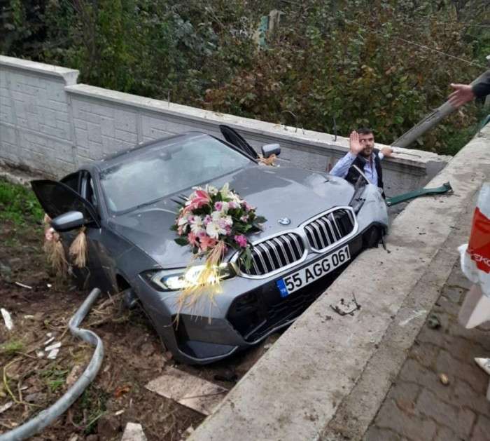 Kazadan gelin ve damat ise yara almadan kurtuldu.