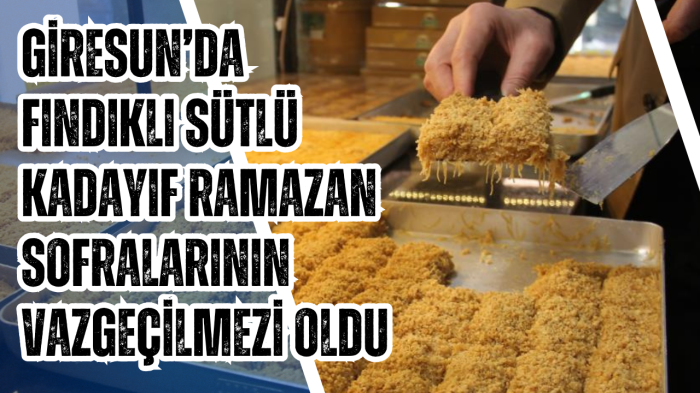 Giresun’da Ramazan ayının vazgeçilmez tatlarından biri haline gelen fındıklı sütlü kadayıf ve coğrafi işaret tescilli fındık ezmeli kadayıf tatlısı, Giresun’un meşhur tombul fındığıyla lezzet buluyor.