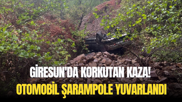 Giresun'da korkutan kaza! Otomobil şarampole yuvarlandı