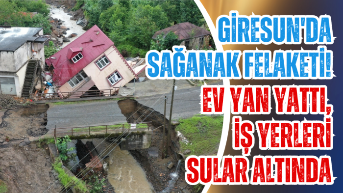 Giresun'da sağanak nedeniyle bir ev yan yattı, bazı ev ve iş yerlerini su bastı.