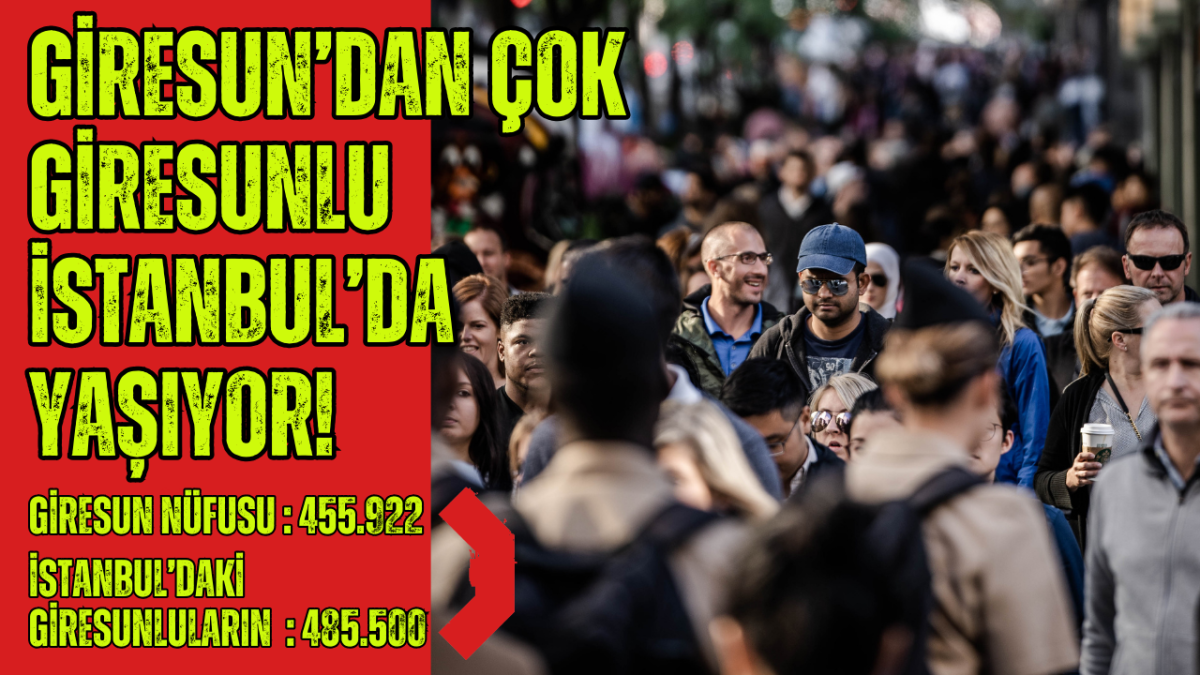 İstanbul’da nüfus sıralamasında 4. Sırada bulunan 485 bin 500 kişi ile Giresunlular, Giresun’un 455.922 nüfusunu geçti.