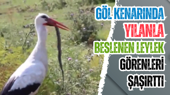 Görüntülerde, leyleğin yakaladığı yılanı yedikten sonra bölgeden uzaklaşması yer alıyor.