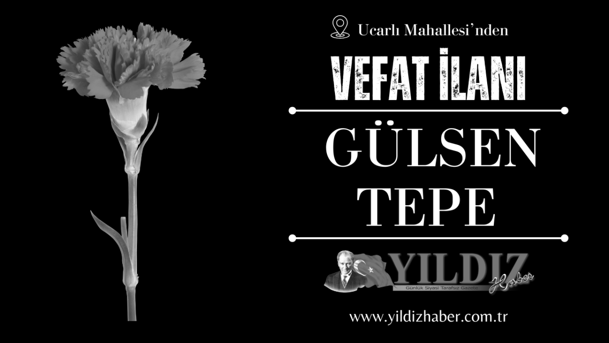 Uçarlı Mahallesi’nde Soytarıoğullarından merhum Şakir ve Zeliha Taşkın’ın kızı şoför esnaflarından Abdullah Tepe’nin eşi, Filiz, Fevzi ve Kadir Tepe’nin anneleri, Binnaz ve Ergün Tepe’nin babaanneleri Gülsen Tepe vefat etti.