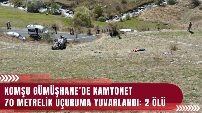 Gümüşhane’nin Kürtün ilçesinde yaklaşık 70 metrelik uçuruma yuvarlanan kamyonet içerisindeki 2 kişi kazanın etkisiyle kamyonetten savrularak feci şekilde can verdi.