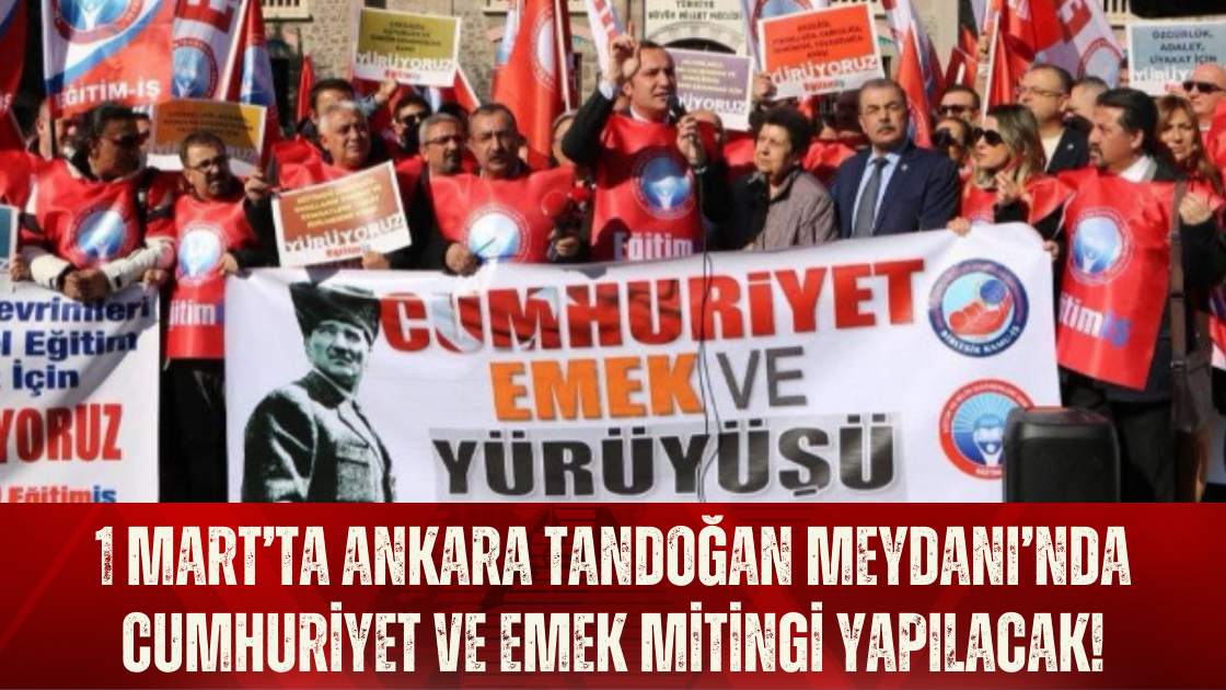 1 Mart 2024 tarihinde Ankara Tandoğan Meydanı’nda düzenlenecek büyük Cumhuriyet ve Emek Mitingi'nde buluşuluyor. Yapılan açıklamada: