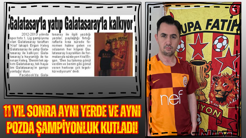 11 yıl önce Keleş, Galatasaray'a olan sevgisini ve şampiyonluk inancını bir fotoğrafla gazetemize yansıtmıştı. Bu sene ise, Galatasaray'ın 24. lig şampiyonluğu kutlamalarında, tam olarak aynı yerde, aynı pozu vererek adeta bir zaman tüneline girdi. Fotoğraftaki Keleş'in yüzündeki mutluluk ve gurur, Galatasaraylılık ruhunu tüm canlılığıyla yansıttı.