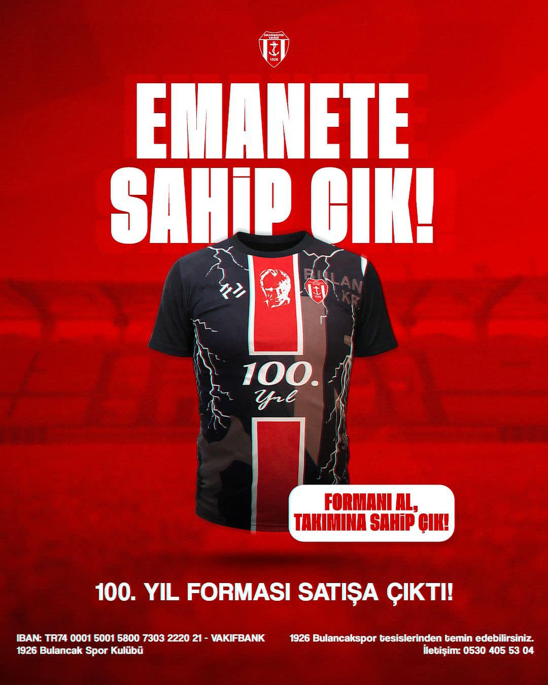 1926 Bulancakspor tarafından yapılan paylaşımda, “Bu forma sadece bir forma değil, 100 yıllık bir tarihin simgesidir. Formanı al, takımına sahip çık” ifadelerine yer verildi.