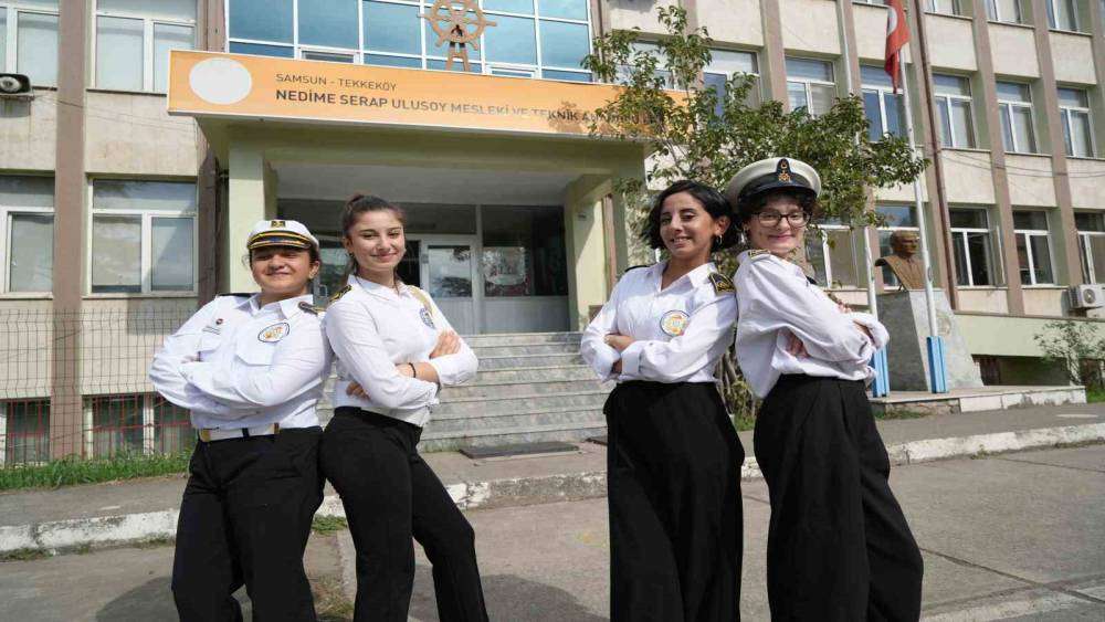 Türkiye’nin en büyük denizcilik liselerinden biri olan Samsun Nedime Serap Ulusoy Denizcilik Lisesi’nde 380 erkek öğrencinin arasında okuyan 4 kız öğrenci dikkat çekiyor.