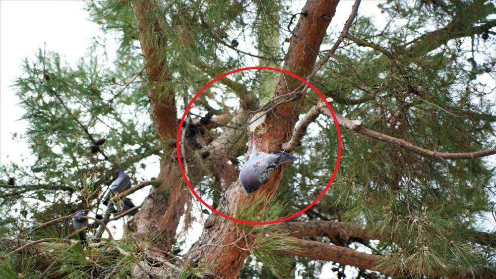 Her gün yüzlerce kuşun uğrak yeri olan Cumhuriyet Meydanı’nda ilginç anlar yaşandı. Meydandaki çam ağacında ayağına ip dolanan güvercin, ağacın dalında tek ayağından asılı kaldı. Burada kuş yemi satan Kemal Çakal, durumu itfaiye ekiplerine bildirdi. Dakikalarca kurtarılmayı bekleyen kuş için vatandaşlar seferber oldu. Bir süre sonra itfaiye ekipleri olay yerine geldi. İtfaiye merdiveni yardımıyla ağaca çıkan ekipler güvercini kurtararak tekrar özgürlüğüne kavuşturdu. Olayı anlatan Kemal çakal, "Baktım ip kuşun ayağına dolanmış. İtfaiyeyi aradım. Onlar da ’tamam ama şuanda olay var, olaydan sonra oraya aktarıyorum’ dediler. İtfaiye gelip güvercini kurtardı" dedi.