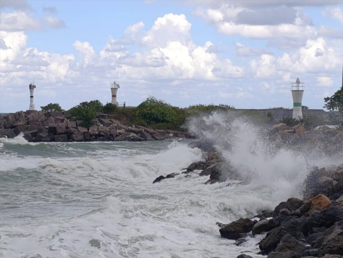 Kuvvetli rüzgar nedeniyle denizde dalga boyu yaklaşık 4 metreye yükseldi. Dalgalar, zaman zaman kıyı şeridindeki istinat duvarlarını aştı.