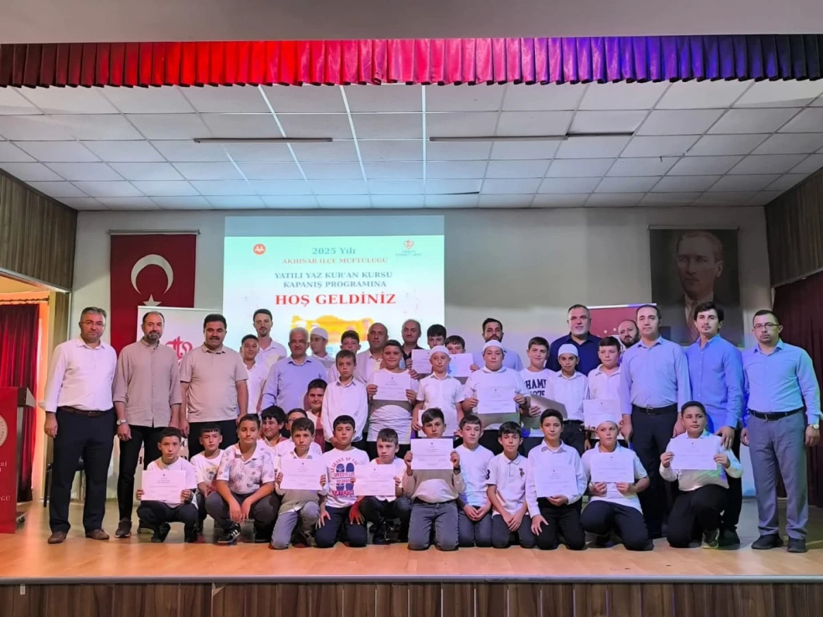 Manisa Akhisar İlçe Müftülüğünce organize edilen Yatılı Yaz Kur’an Kursu’nun kapanış programı, yoğun katılım ve coşkulu bir atmosferle gerçekleşti.