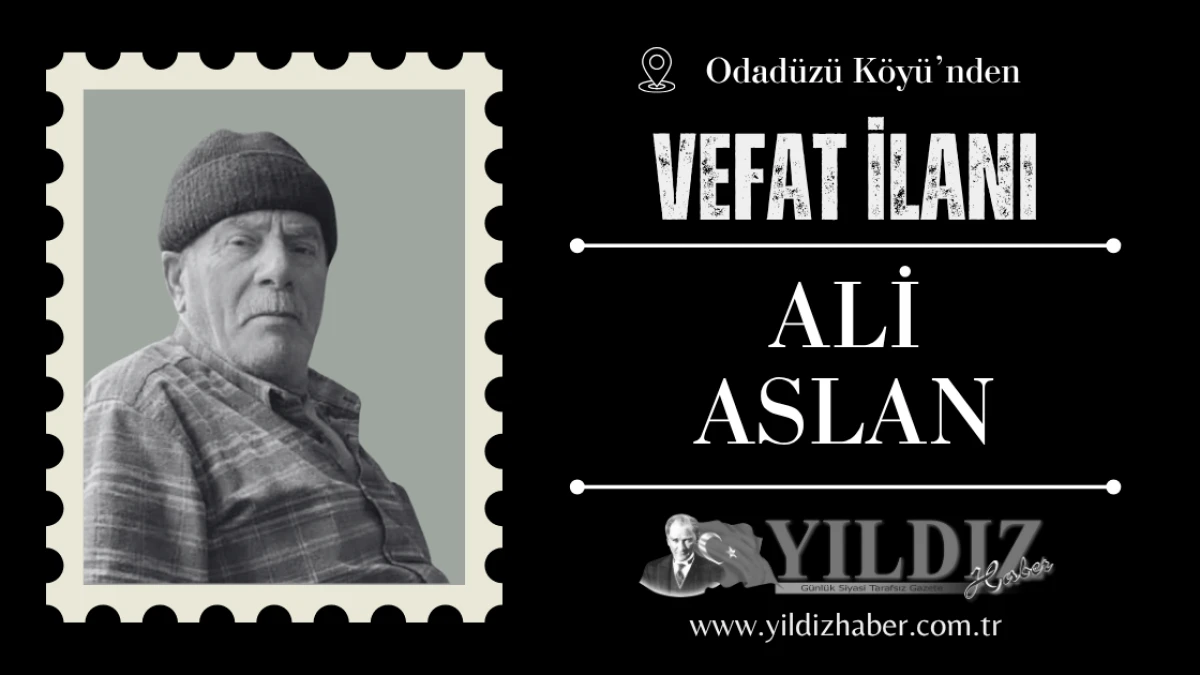 Odadüzü Köyü'nden, Merhum Yakup Aslan’ın oğlu; Turan, Bayram, Aynur ve Ayşe’nin babaları; Veysel, Recep ve Selahattin Aslan’ın abileri Ali Aslan vefat etti.