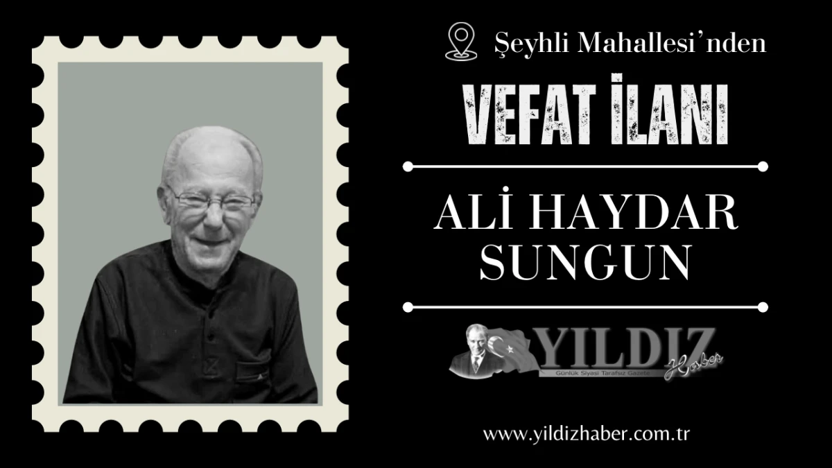 Şeyhli Mahallesi'nden Erdem Sungun'un babası, İstanbul Büyükşehir Belediyesi Mahalli İdareler Koordinatörü ve Bahçeşehir eski Belediye Başkanı Kemal Aydın'ın kayınpederi Ali Haydar Sungun vefat etti.
