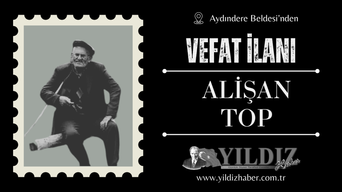 Aydındere Beldesi’nden, Derecikalan Mahallesi’nden, merhum Osman Top’un oğlu Alişan Top vefat etti.