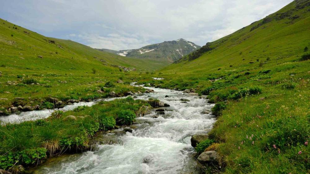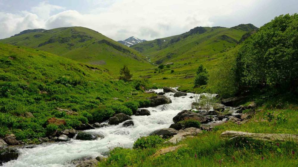 Gümüşhane’nin Torul ilçesi sınırlarındaki Dulağa Yaylası, bahar aylarında açan çiçekleri, karlı zirveleri ve coşkun dereleriyle ziyaretçilerine doğayla baş başa huzur dolu bir ortam sunuyor.