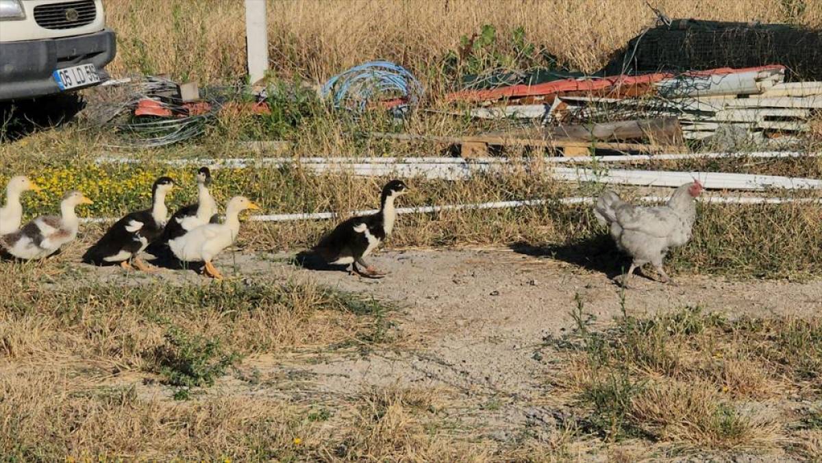 Çiftlikte sevimli görüntüler oluşturan tavuk ve ördek yavrularının görenleri gülümsettiğini ifade eden Çetin, çiftliğinde 15 ördek, yeni doğan 6 ördek yavrusu, 8 horoz, 15 tavuk, 9 tane de köpek bulunduğunu aktardı.