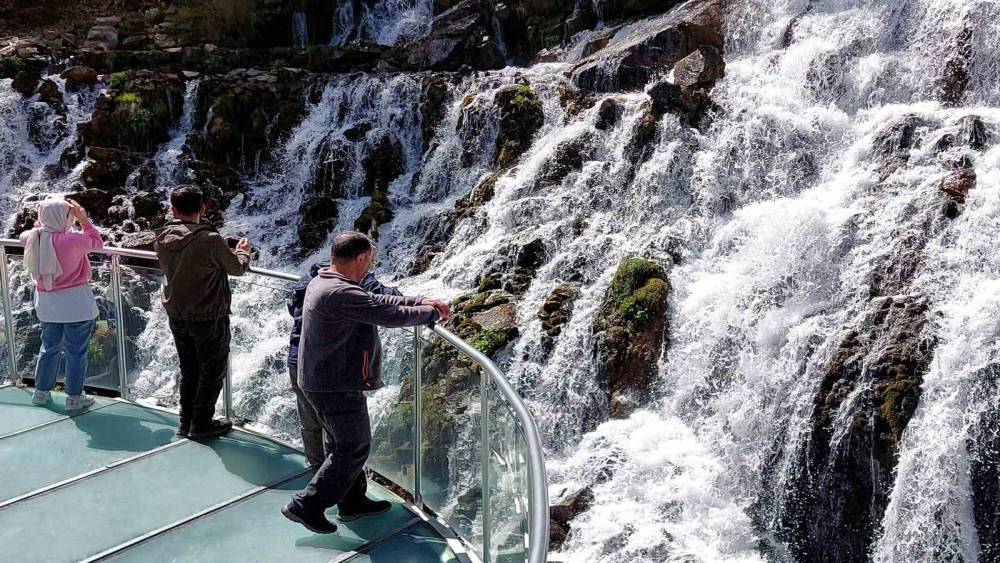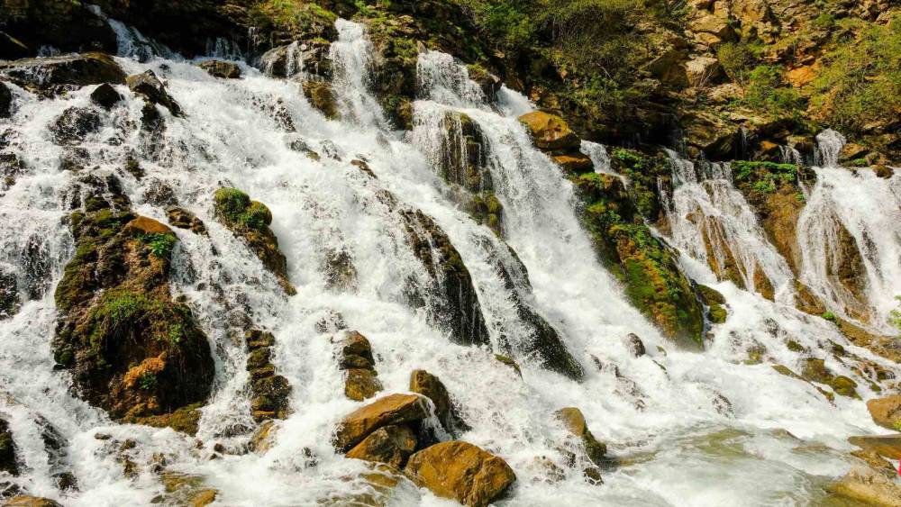 Dağın ortasındaki 40 ayrı kaynaktan çıkan sular birleşerek görkemli bir şelaleye dönüşürken 15 metre yükseklikten dökülen süt rengindeki köpük köpük buz gibi berrak suyunun oluşturduğu vadide binlerce yıldır gürül gürül çağlıyor.