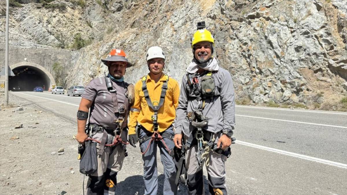 Endüstriyel dağcı Bülent Mete de Artvin ve ilçelerindeki karayollarında yamaçlarda taş düşürme, örtüleme çalışması yaptıklarını kaydetti.