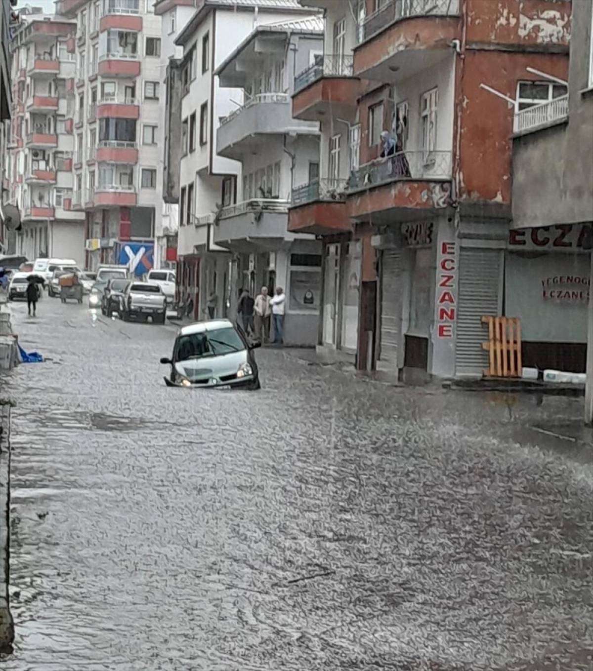 Yağışın etkisiyle ilçe merkezindeki su kanalları ve rögarların tıkanması üzerine cadde ve sokaklar suyla kaplandı.