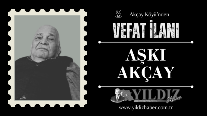 Kader Akçay'ın babası; Hamide Akçay'ın eşi; Bulancak esnaflarından Erkan Göktekin'in dayısı Aşkı Akçay vefat etti.