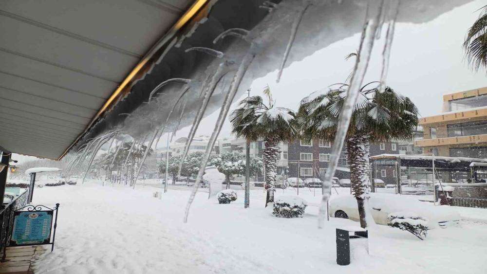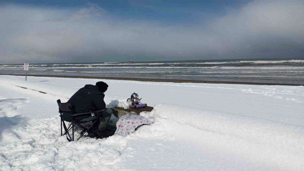 Atakum sahilinde masalsı kar güzelliği