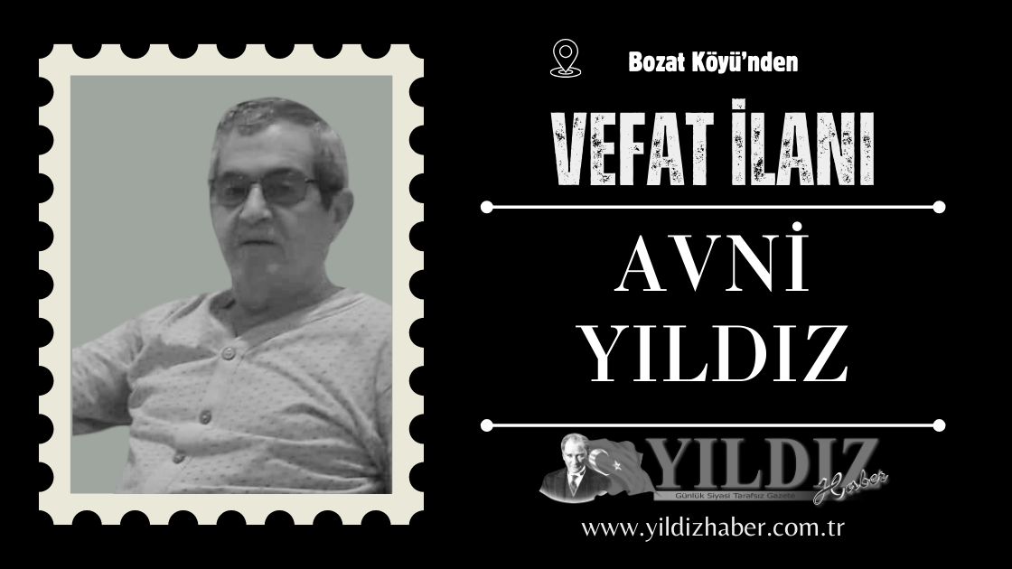 Bozat Köyü’nden Dalmanoğulları’ndan merhum Ali Yıldız’ın oğlu eski belediye personeli Erhan Aslan'ın kayınpederi Avni Yıldız vefat etti.